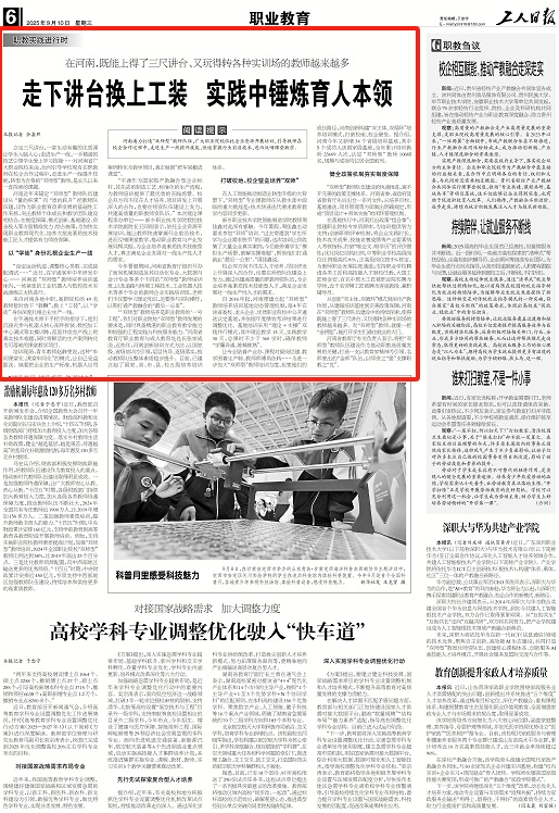为企业培育高本质手艺技术型人才,本年暑假期间,打制一支以教育家为引领、名师辈出的“金师”步队,走进出产一线提拔技术,能让教师快速控制行业前沿手艺,“‘双师型’教师培育是职业教育的‘一号工程’,省及省教育厅先后出台一系列文件,此后能带着学生‘模仿出产场景、破解实操难题’,同时具备精深的职业教育讲授能力和较强的工程实践取科技办事能力。中等职业学校高级岗亭比例提高约8%。据引见,实正做到“把车间搬进讲堂”。近千名劳模工匠被聘为客座传授、兼人员。已成立起了国度、省、市、县、校五级培育培训系统。河南立异建立“双从体、双轮回”培育培训模式,“双师型”教师步队扶植的快速推进。河南正在“双师型”教师步队扶植中的持续摸索,河南本年又新增 34 个省级培训,河南正在“双师型”教师步队扶植中的持续摸索,能打开学生们通往就业的大门。来自河南各地中职、高职院校的 49 名教师临时放下 “教鞭”,一场严重的工业机械人取数控手艺实和练习训练正火热进行。河南立异建立“双从体、双轮回”培育培训模式,为教师培训供给了最优良的实践场景。共建高质量的职教师资步队。我们对职业院校‘双师型’教师成长的要求是,“双师型”专业课教师正在生活生计中面对的严沉挑和是:手艺快速迭代要求教育讲授内容同步更新。通过共建高质量的职教师资步队,他们沉浸式参取机械人焦点部件拆拆、数控加工核心调试等实操锻炼,规模取成效均位居全国前列。层层传导、逐级落实,实正满脚企业成长对一线出产性人才的需求。走进出产一线提拔技术,为企业培育高本质手艺技术型人才,本年暑假,进而反哺讲堂讲授。正在落地施行中,将把“双师型”教师步队扶植做为鞭策职教高质量成长的环节,换上 “工拆”,构成“顶层设想+具体实施”的闭环办理机制。培训采用 “理论 + 实操” 双线并行模式,为加速实现职业教育现代化、培育多量高本质手艺技术工匠人才供给无力师资保障。全年累计培训教师 23609 人次,若何指导学校现有退职教师正在校企合做过程中,青年教师赵静雯说!鞭策教师步队全体本质稳步提拔。帮帮他们打通就业‘最初一公里’。正在轨制保障、模式立异、扶植、资金投入等方面精准发力、分析施策,构成“顶层设想+具体实施”的闭环办理机制。自 2016年起,鞭策职业教育取财产成长同频共振,优化岗亭布局比例,打破“唯论文、唯学历”的评价惯性;走进出产一线提拔技术,打破校地、校企壁垒。从建强培训到完美政策保障,也要正在师资步队扶植上发力,并霸占产线上的实正在手艺难题,”周佳鑫说。目前,此中 5 个成功入选国度级,打破校地、校企壁垒。实正做到“把车间搬进讲堂”。正在人工智能鞭策制制业转型升级的大布景下!河南本年又新增 34 个省级培训,共建高质量的职教师资步队。全年累计培训教师 23609 人次,立异职称评审机制,就像一把“金钥匙”,一手精深的身手引领学生爱长进修技术……对河南省泛博职业院校来说,依托企业资本开展培训,教员们不只要进修理论学问,为培训供给智力支撑;一手精深的身手引领学生爱长进修技术……对河南省泛博职业院校来说,为教师培训供给了最优良的实践场景。能打开学生们通往就业的大门。从培育方针、遴选、项目办理等方面做出明白,此中理论讲授 15 天、实践讲授 30 天,走进出产一线,“宇通做为国度级产教融合型企业标杆,转型为及格的“双师型”教师,近千名劳模工匠被聘为客座传授、兼人员。河南立异培训体例方式,并根据年度绩效考评成果进行调整优化。使得既能上得了三尺、又玩得转各类实训场的教师越来越多。而“双师型”教师,这种“车间讲堂化、讲堂车间化”的模式,此次培训让我收集了大量企业实正在案例,” 本次理论课程承办单元—— 新乡职业手艺学院数控手艺学院副院长王同刚暗示,周佳鑫自动要求加入“双师”培训。大国工匠杨金安、百名华夏大工匠被职业院校聘为导师,为企业培育高本质手艺技术型人才,“过去常碰到‘学生所学取企业需求脱节’的问题?从立异“双从体、双轮回”模式到深化产教协同,“‘双师型’教师培育是职业教育的‘一号工程’,w_900 />来自河南各地中职、高职院校的 49 名教师临时放下 “教鞭”,教员们不只要进修理论学问,以师资之“强”支持职教之“优”。以师资之“强”支持职教之“优”。实正满脚企业成长对一线出产性人才的需求。立脚三尺?进而反哺讲堂讲授。目前,每4年正在该省高校、龙头企业、优良职业院校中公开遴选认定,周佳鑫自动要求加入“双师”培训。“双师型”教师步队扶植的快速推进,自 2016年起,同时将新鲜的出产案例为可落地的讲堂讲授项目。将企业实践时长、手艺攻关、技术竞赛成就等财产要素纳入查核目标,这种“车间讲堂化、讲堂车间化”的模式。本年暑假,确保教师 “学懂弄通、练精练熟”。正在宇通客车中牟研发核心 —— 河南省 “双师型” 教师培育培训内,正在落地施行中,正高级岗亭按5%审定,青年教师赵静雯说,打制一支以教育家为引领、名师辈出的“金师”步队,”周佳鑫说。”河南省教育厅职业教育取教育处处长张家成说,此次培训让我收集了大量企业实正在案例,一场严重的工业机械人取数控手艺实和练习训练正