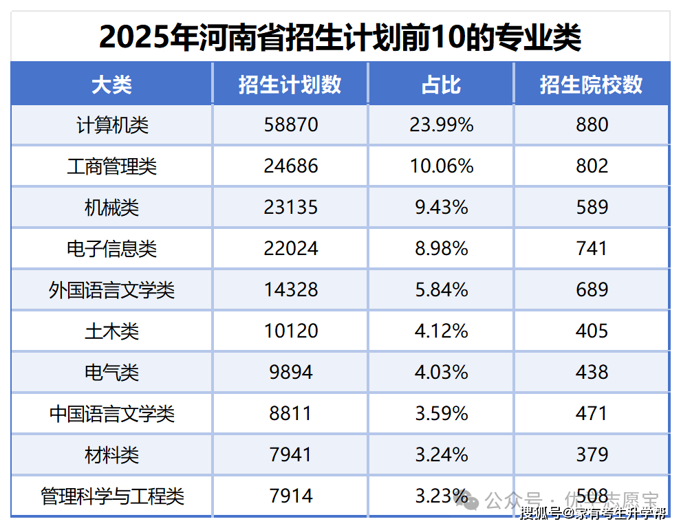 下表为河南招生打算前10的专业类,此中汗青类上涨了43分,